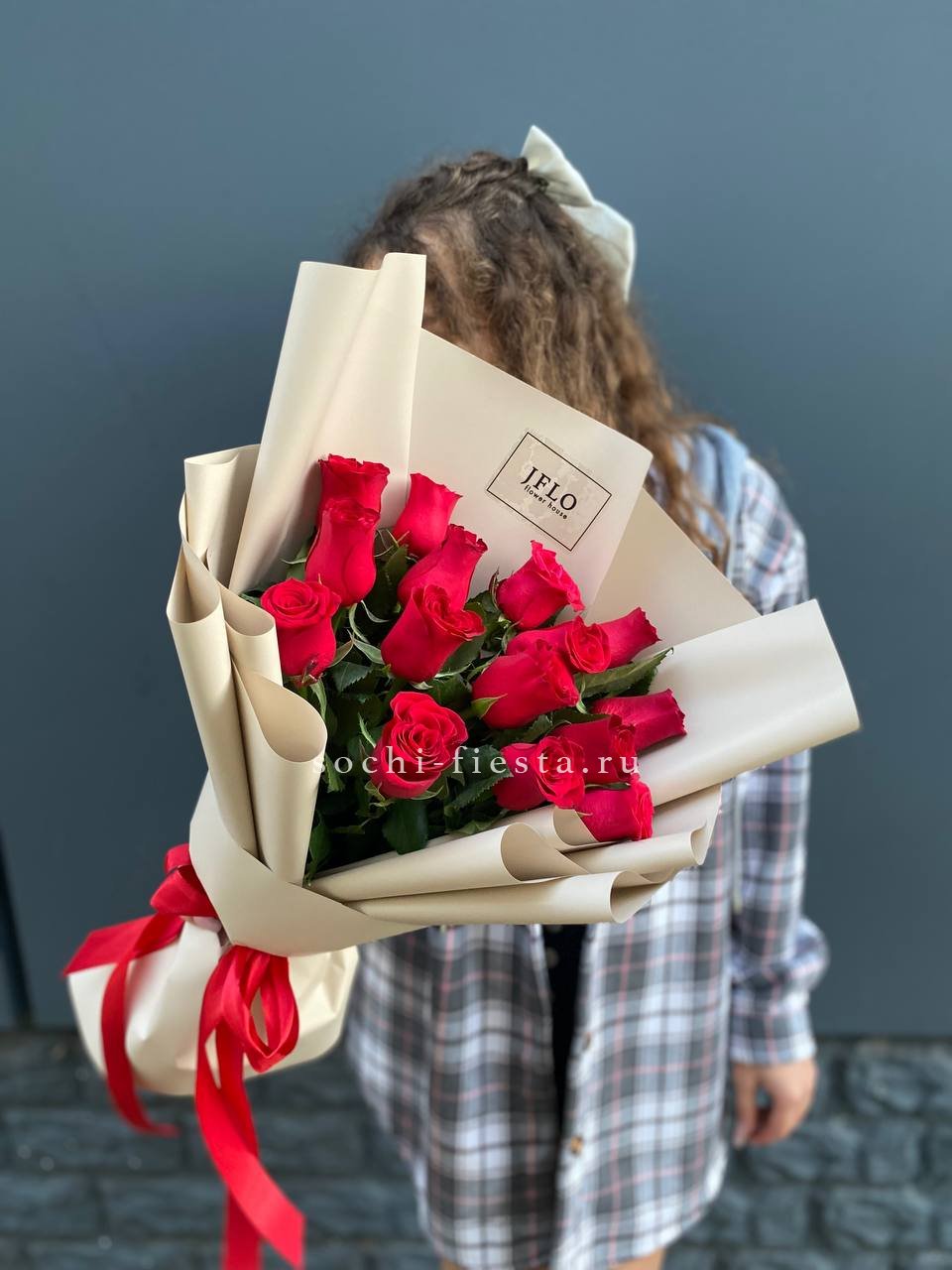 Классическая красная роза в лаконичной латте пленке — для тех, кто ценит чистоту формы. Пятнадцать стеблей держат ровный ритм и не перегружают образ. Простота, которая всегда работает.