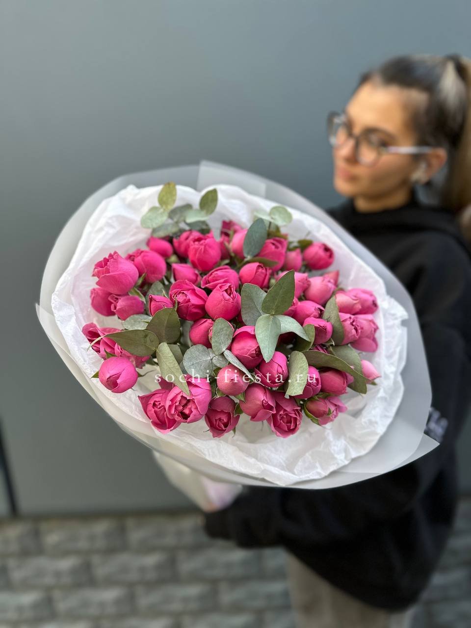 Мы работаем только со свежими цветами — букеты радуют от 7 до 14 дней и дольше при правильном уходе.