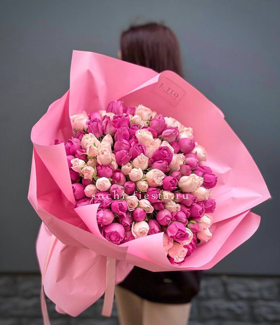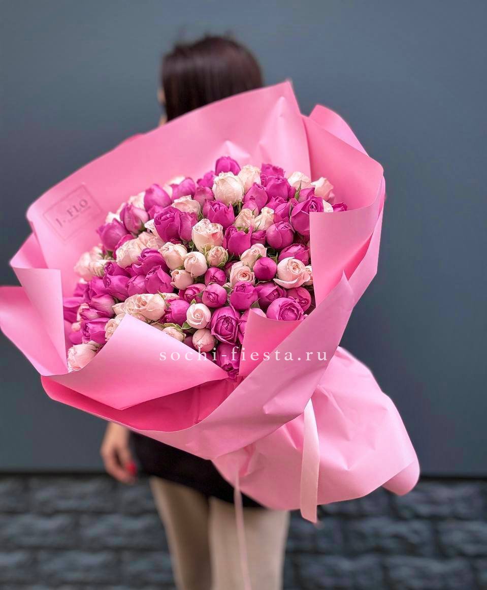 51 пионовидная кустовых роза Мисти Баблс и бомбастик.