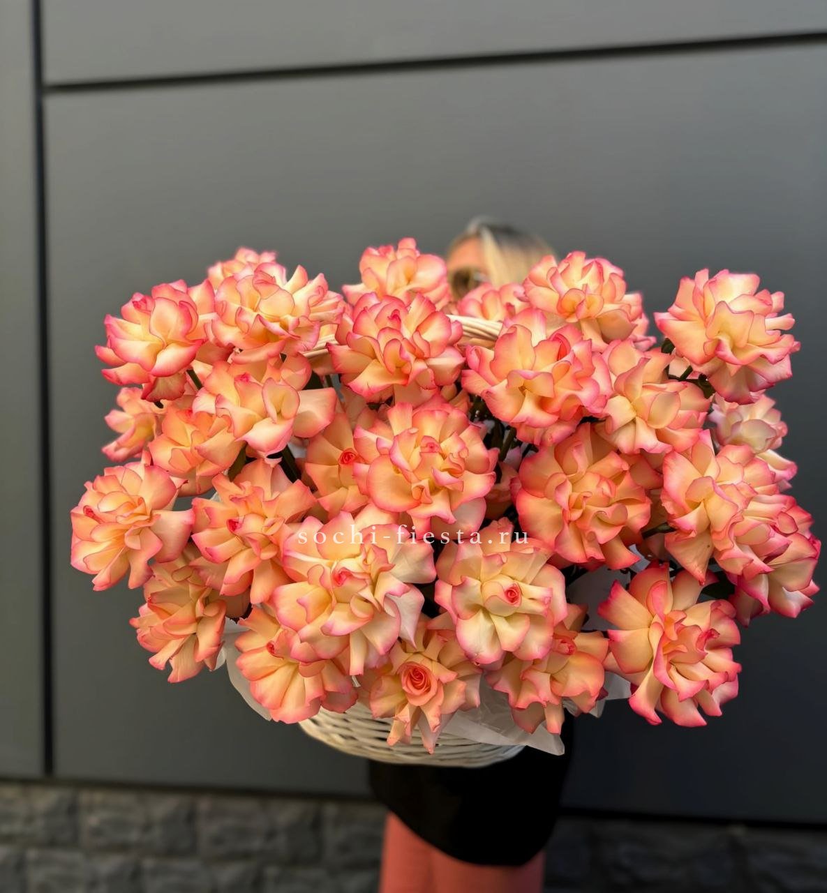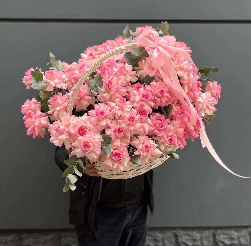 Французские вывернутые розы 45 шт., корзина.
