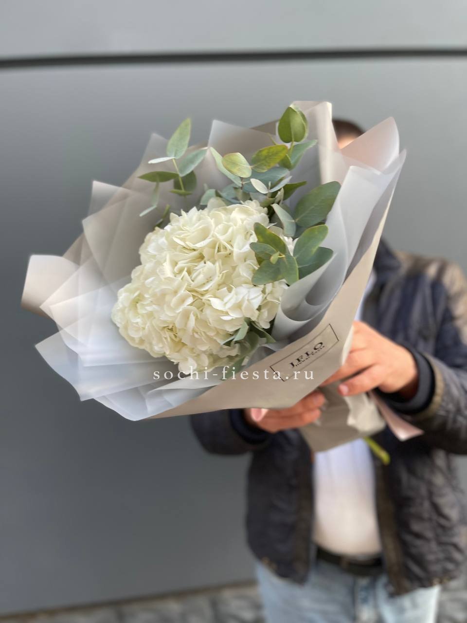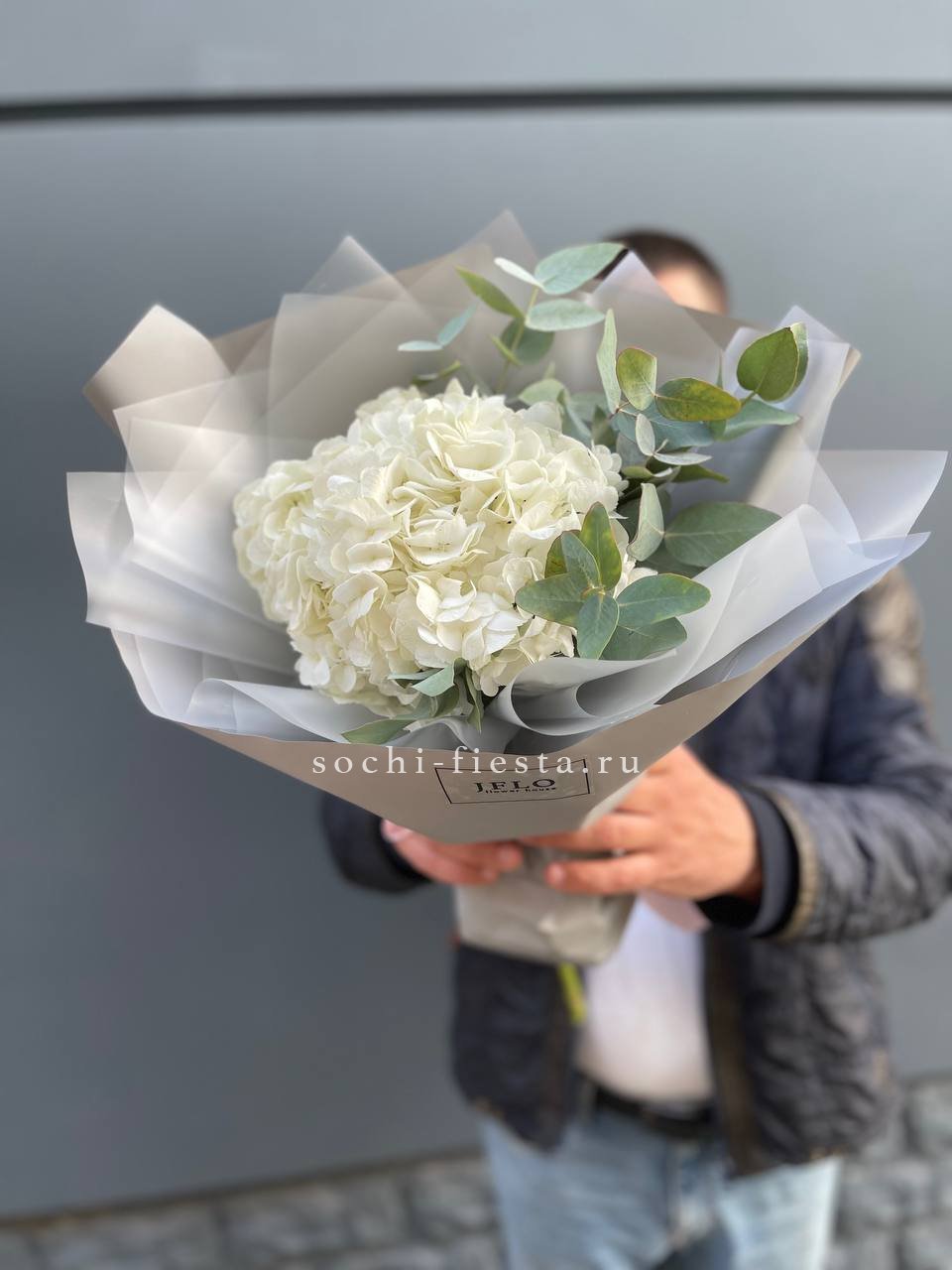 Розовая гортензия и эустома раскрывают свою красоту в каждом лепестке. Мягкие оттенки переходят один в другой, создавая спокойное и гармоничное впечатление.