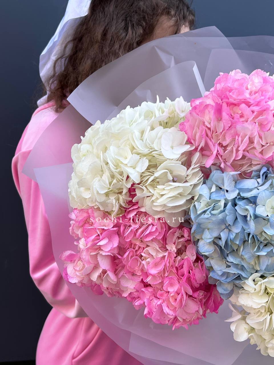 гортензия - 11 шт., лента, дизайнерская упаковка.
