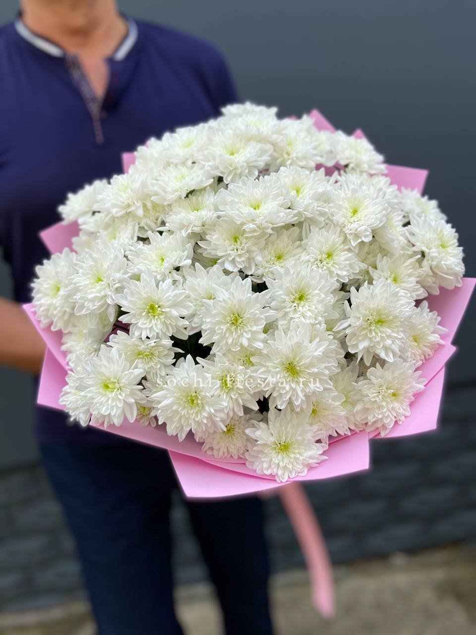Fifteen веток кустовой хризантемы образуют пышное облако из множества мелких бутонов. Простая упаковка не отвлекает от густоты соцветий и их природной фактуры. Букет долго сохраняет свежесть и объём.