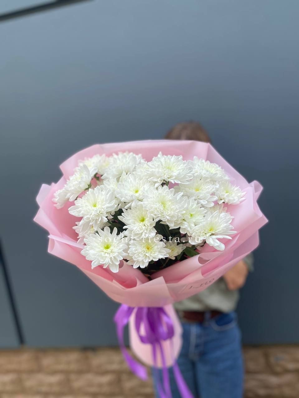 Букет бело-розовых хризантем