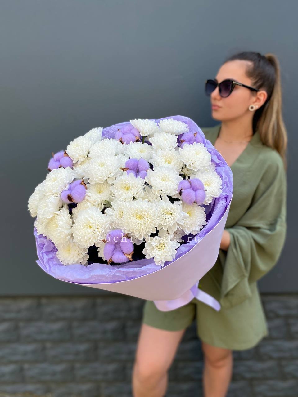 Для заказа товара " Букет хризантем и хлопка" с доставкой в Оренбурге нажмите в корзину