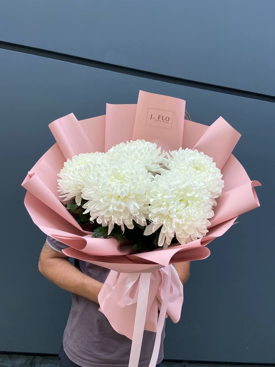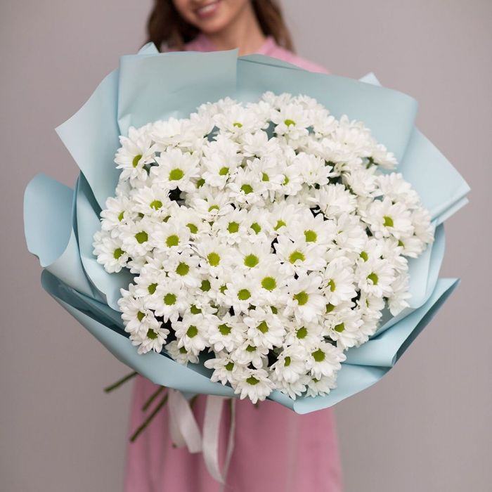 Крупные соцветия одноголовых хризантем раскрываются во всей полноте. Плотные лепестки образуют графичные круги, а сдержанная упаковка сохраняет чистоту формы.