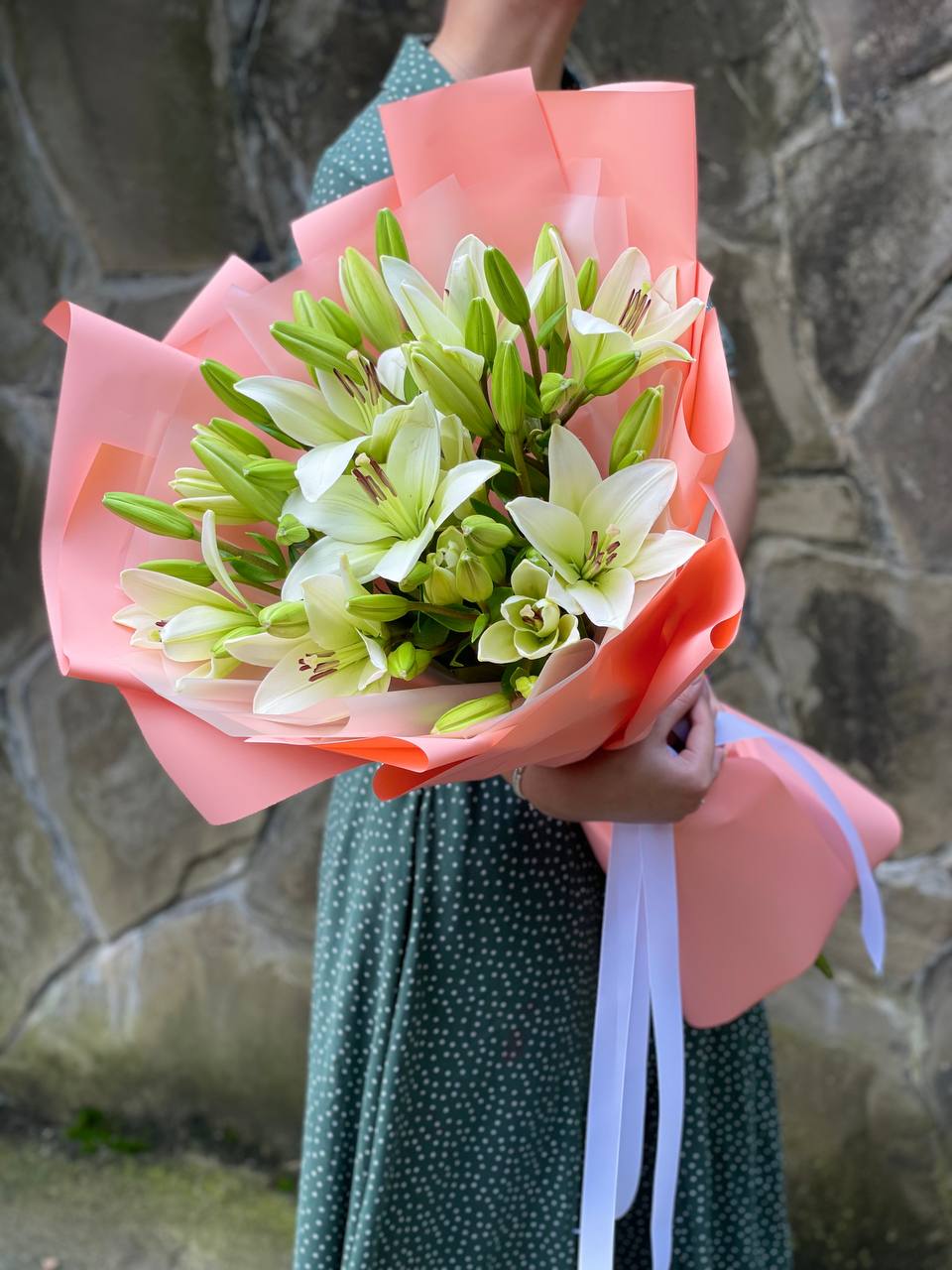 Мы работаем только со свежими цветами — букеты радуют от 7 до 14 дней и дольше при правильном уходе.
