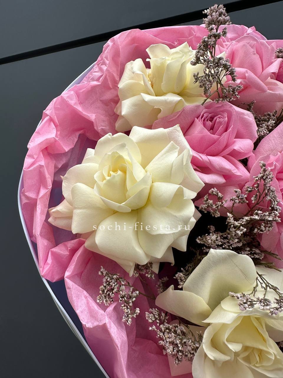 Мы работаем только со свежими цветами — букеты радуют от 7 до 14 дней и дольше при правильном уходе.