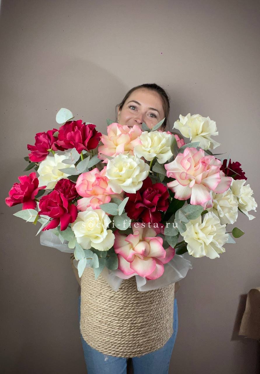 Для заказа товара "35 французских роз микс в джутовом боксе" с доставкой в Оренбурге нажмите в корзину