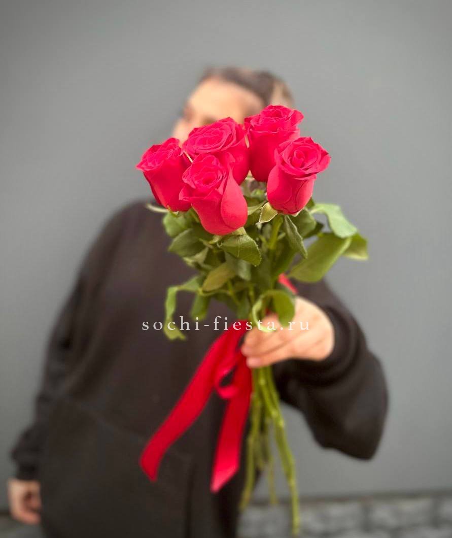 красная роза- 5 шт, лента. Данная цена доступна при единовременном заказе от 10 шт.