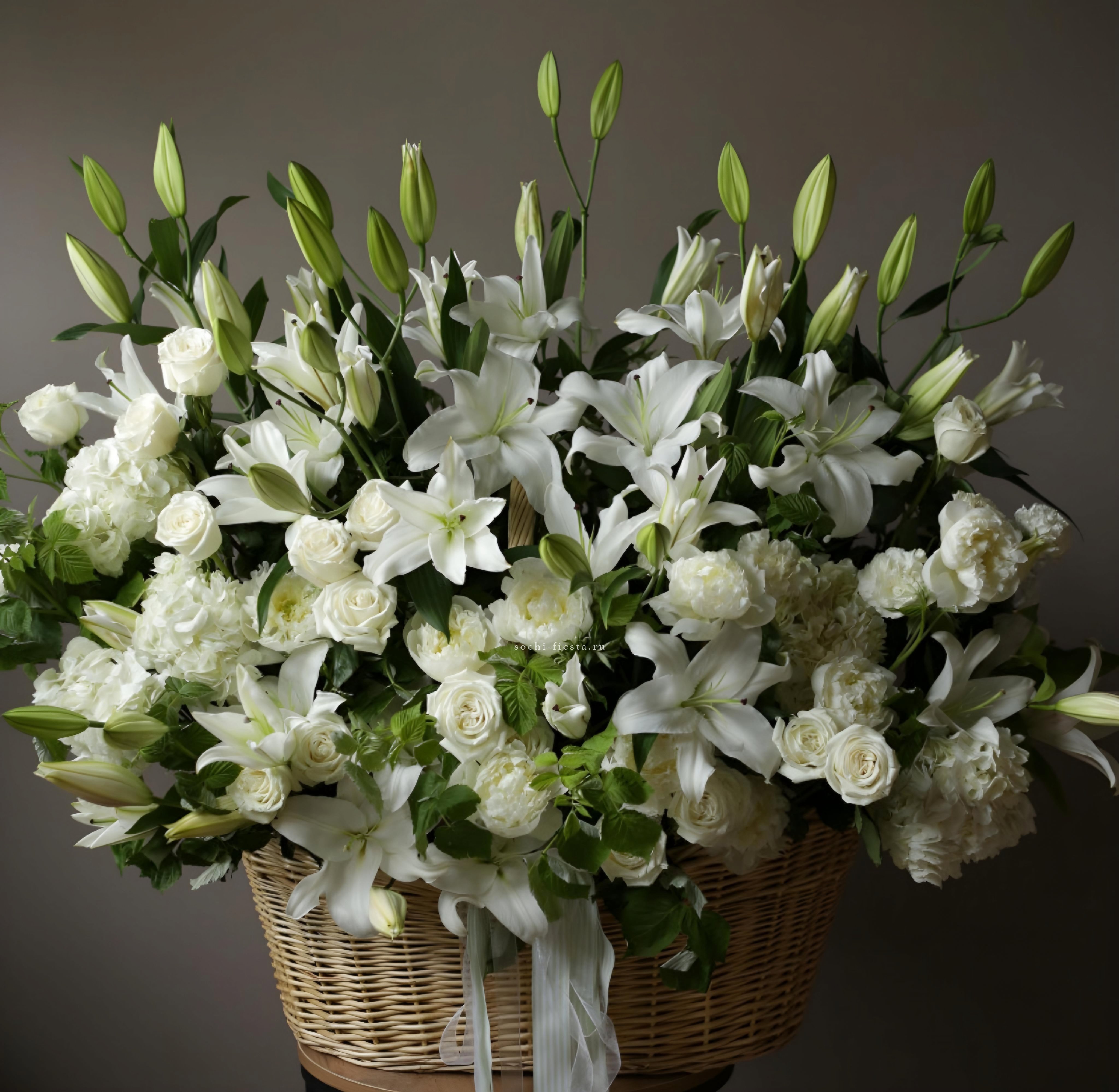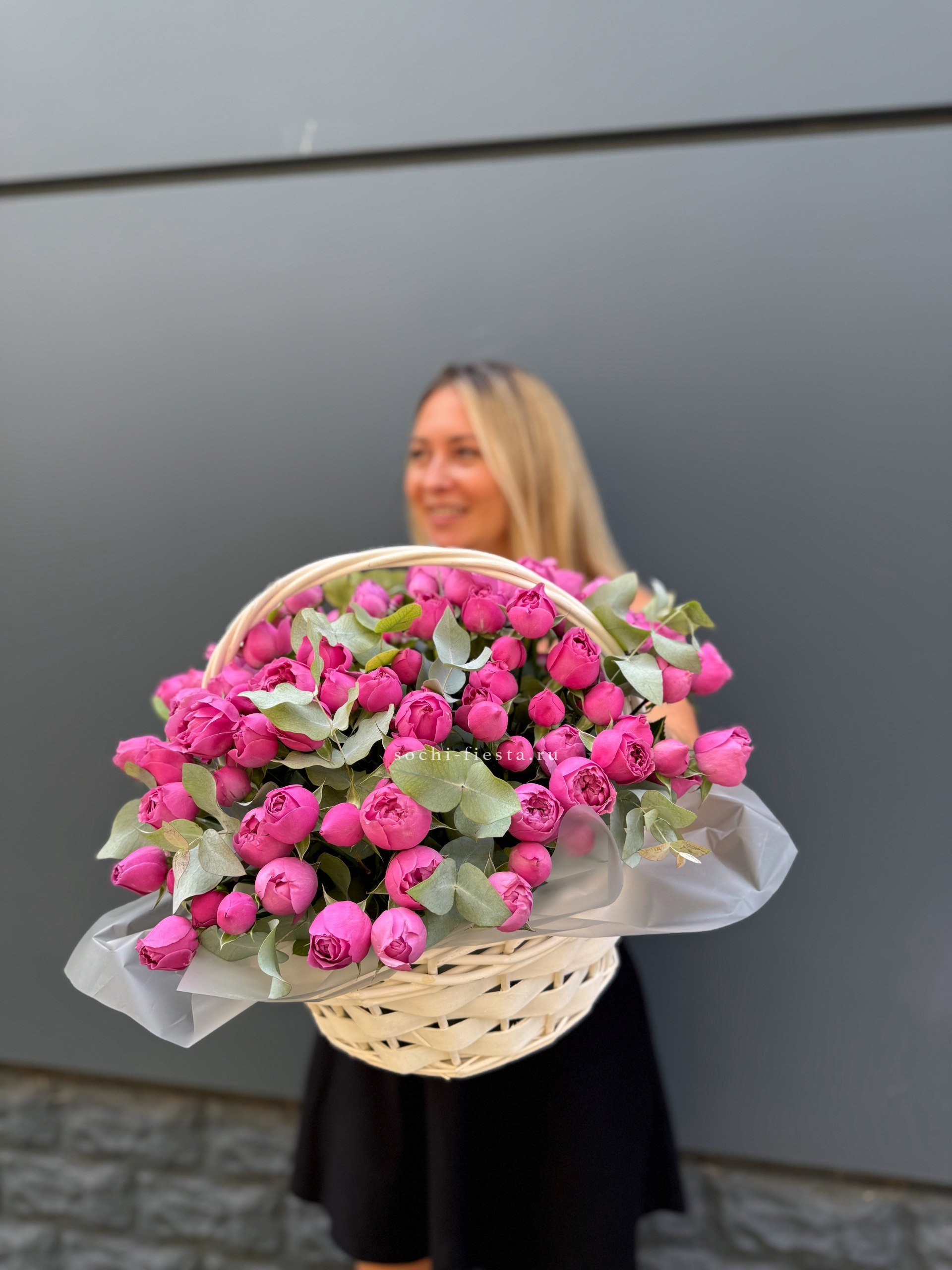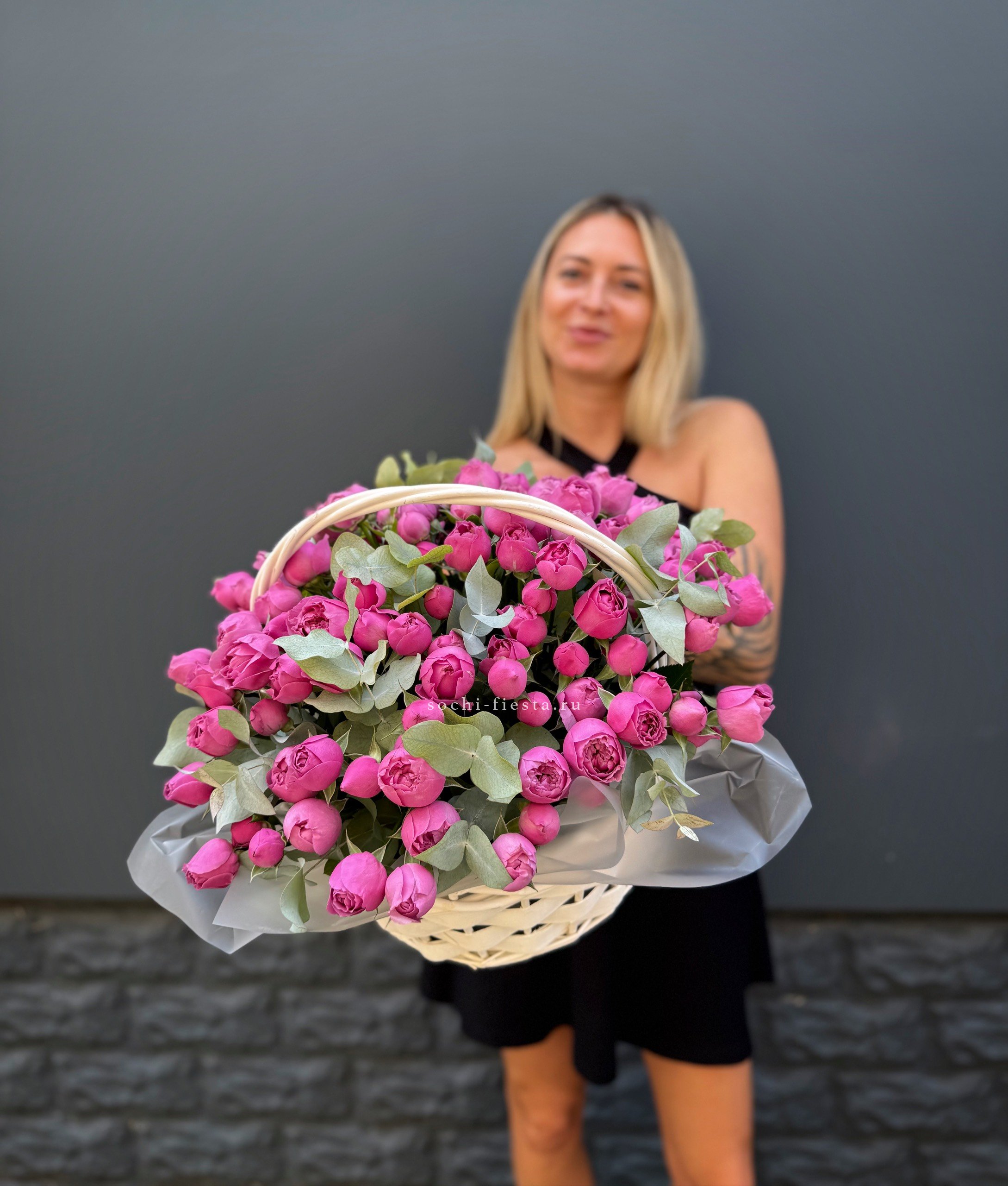 Пятьсот пять алых бутонов собраны в масштабную корзину, которая заполняет пространство цветом и объемом. Это композиция, которая говорит сама за себя своим количеством и насыщенностью.