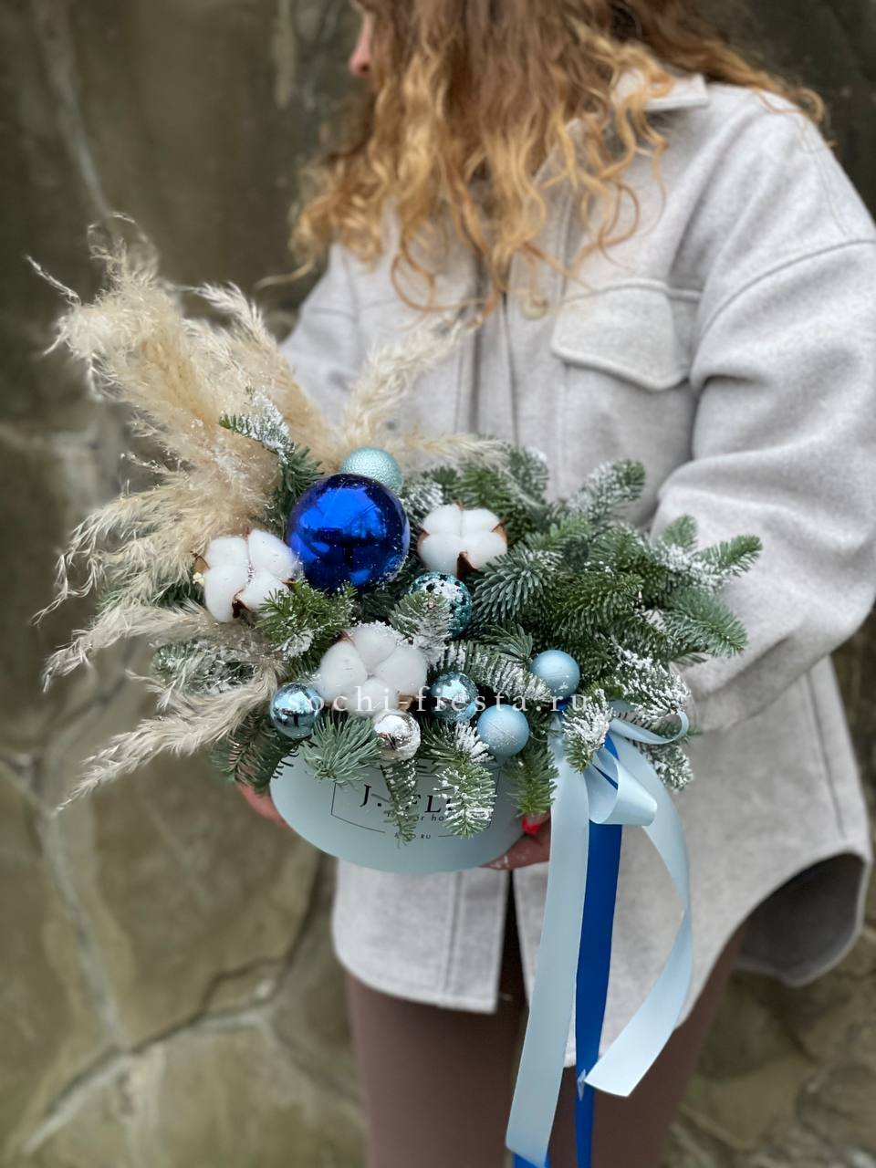 датский нобилис, игрушки, хлопок, помпасная трава (сухоцветы) оазис, бокс, лента Готовая композиция может иметь незначительные внешние отличия от примера на фотографии.
