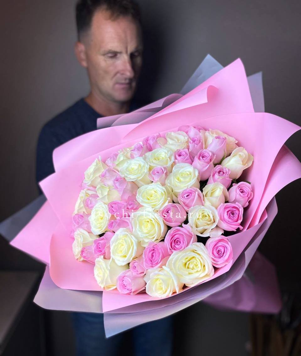Состав букета на фотографии: 29 роз карина, крафт, лента