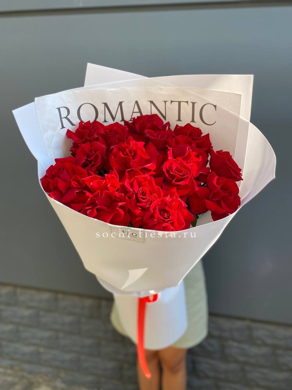 роза красная 70см - 15 шт., лента. Возможна упаковка на ваш выбор.