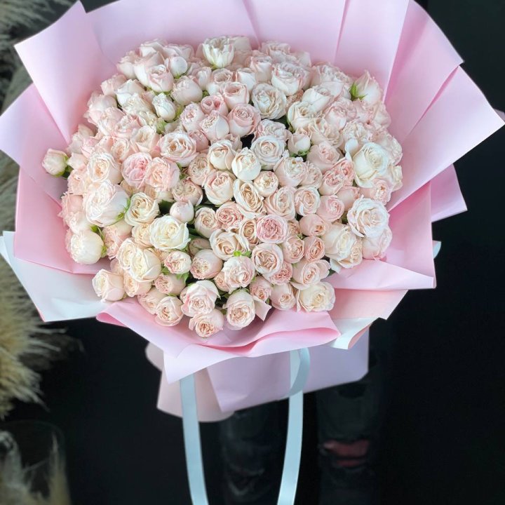 Кустовые пионовидные розы сорта «Бомбастик» отличаются крупным бутонов, нежной текстурой и бледным воздушным оттенком.