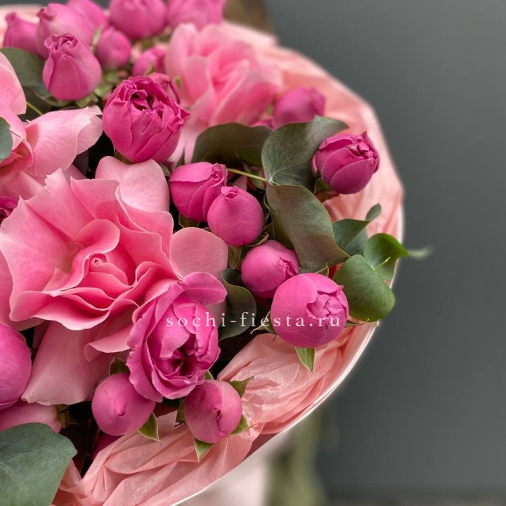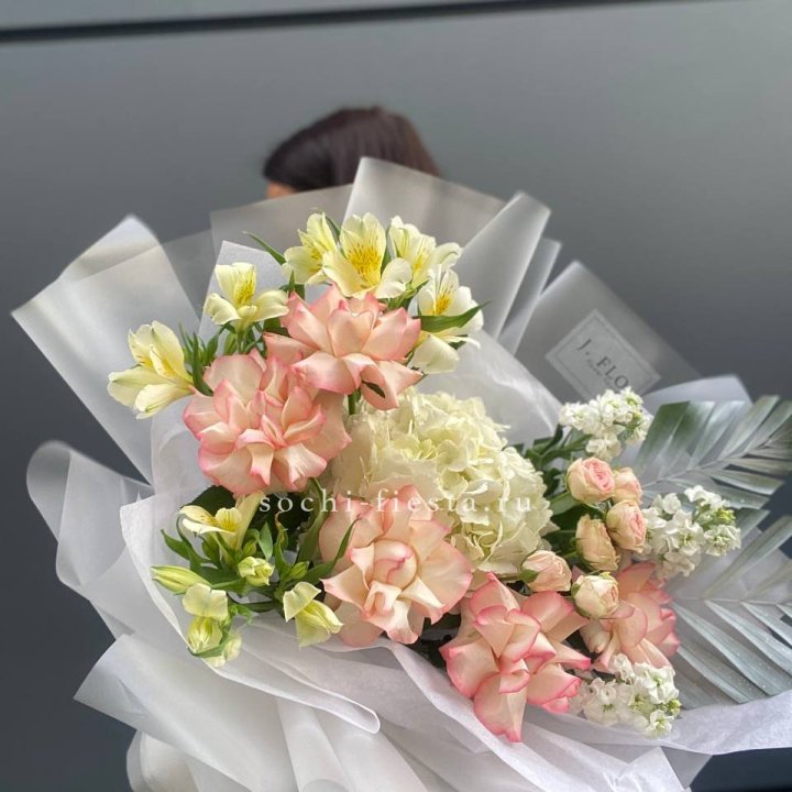 сборный букет из роз и альстромерии для небольшого города в красивой упаковке