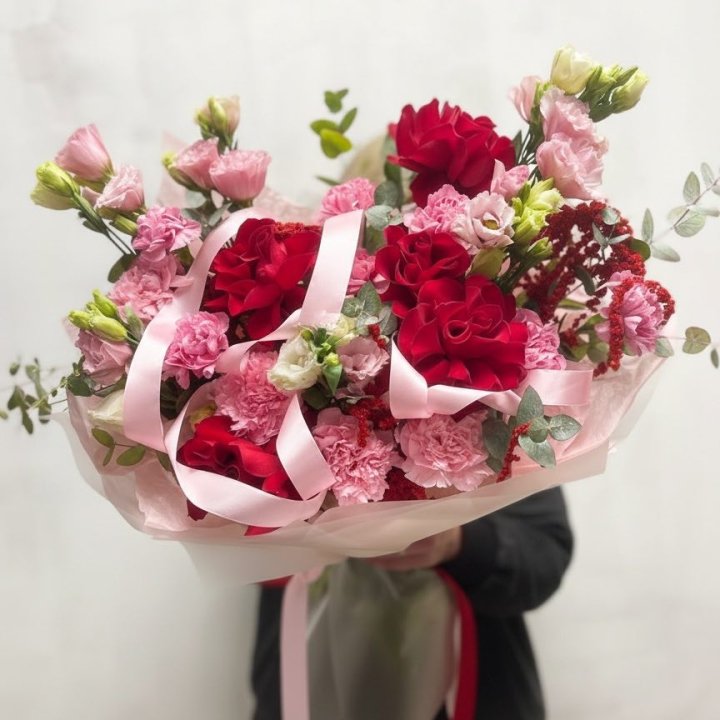 Состав сборных букетов в Оренбурге: розы (Freedom, Mondial), хризантема кустовая, альстромерия, эустома, фрезия. Дополнительно в сезон — тюльпаны, нарциссы, ранункулюсы, ирис. Поставки в Оренбурге раз в 3-5 дней из ближайшего регионального центра. Флорист планирует ассортимент под дату поставки и знает, что будет в наличии к нужному дню.