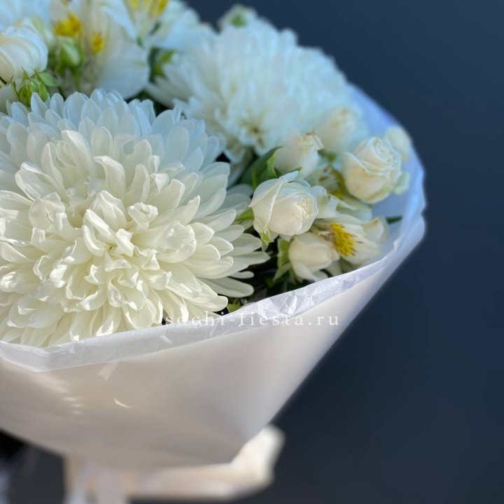 сборный букет из роз и хризантем для подарка в небольшом городе