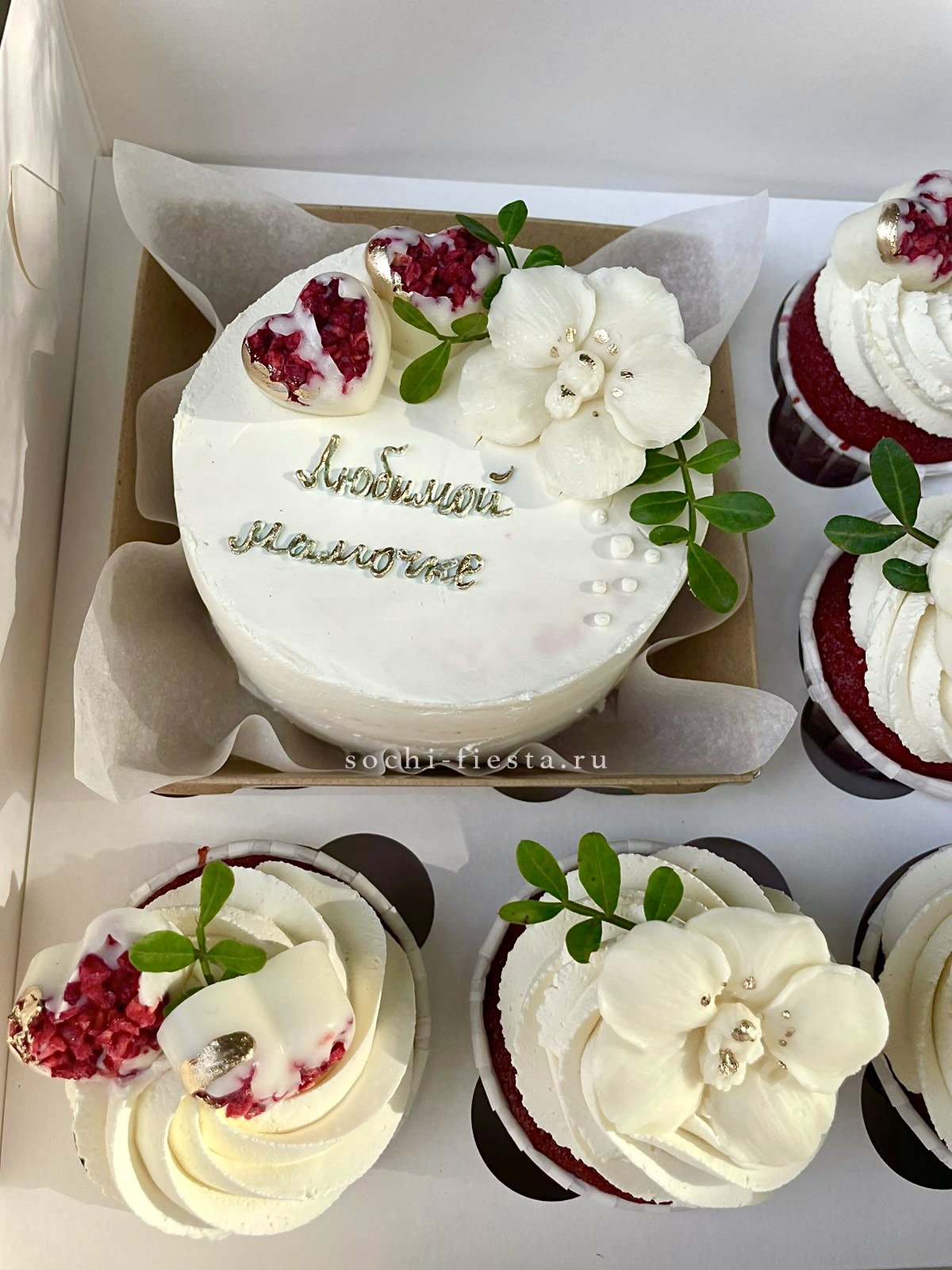 восхитительный набор капкейков с бенто тортом ручной работы "Мамочке" Состав набора: бенто торт - 400 г., капкейки 5 шт. Начинки бенто-торта на выбор: шоколадный трюфель, апельсин, ваниль и ягоды, красный бархат с малиной. Декор из бельгийского шоколада, сушеные ягоды, веточки зеленой фисташки. Упаковка и декор включены в стоимость.Наличие начинки необходимо уточнять в день заказа. Возможны различные дизайны, надписи.